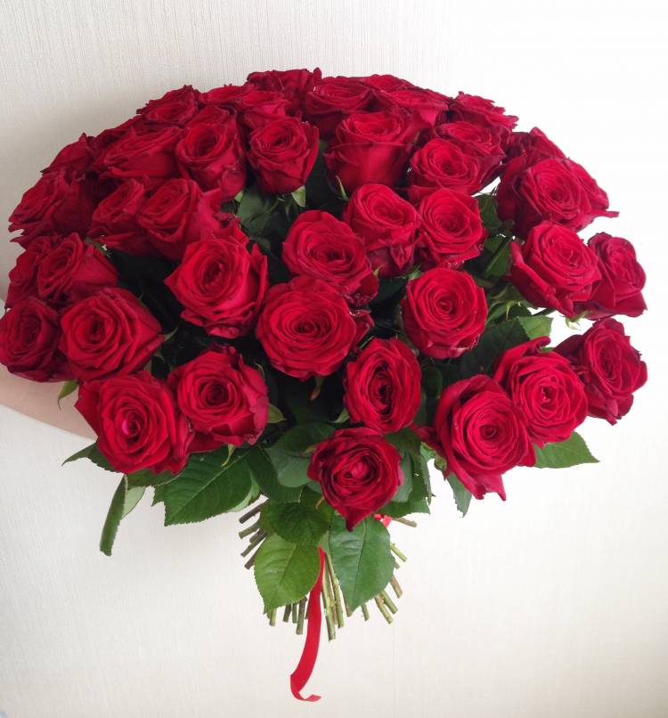 Букет, состоящий из огромного количества красных роз, не сможет оставить равнодушным. Это классика, проверенная годами, поможет растопить сердце близкого человека. Красные розы всегда означали страсть и любовь, прекрасно подходят для выражения чувств женщине или мужчине, поднимают настроение и уносят в мир романтики непередаваемым запахом.