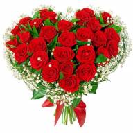 Готовите незабываемый вечер для любимого человека? Букет из благородных алых роз в форме аккуратного сердца станет роскошным украшением интерьера и приятным дополнением к основному подарку. Флористам удалось создать удивительную гармонию между насыщенными красными бутонами и контрастными зелеными листьями. Легкую игривость и элегантность композиции придают мелкие снежинки в виде деликатных белоснежных гипсофил. Такой букет наверняка не оставит вашу половинку равнодушной и надолго окутает её волшебным цветочным ароматом, навевающим только положительные эмоции и сладкие воспоминания.